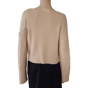 INTERMIX Beige Cotton and Cashmere Cold Shoulder Sweater S