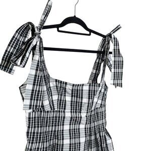 Anthropologie Black & White Plaid Square-Neck Tie-Strap Midi Dress Checkered M