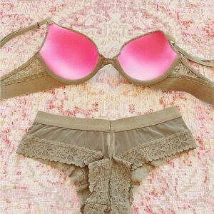 PINK, Woman’s Green Cheetah Print Bra & Underwear Set