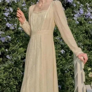 Simple Retro Lace Patchwork Cottage Core Yellow M Coquette Lace Dress