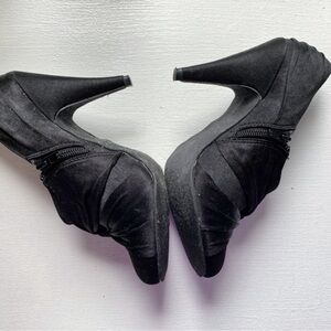 ROCKET DOG Black Satin Fabric Side Zip Cone Heel Booties