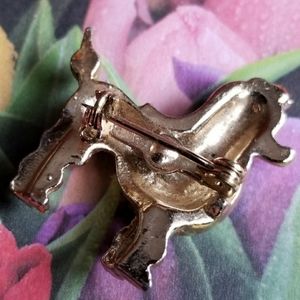 Vintage poodle brooch dog pin rhinestones gold tone figural