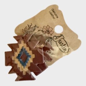 Western Earrings- Justin Boots, Brown, Blue, Cream Geometric