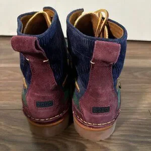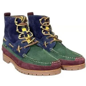 Elevate your footwear game with these stylish Polo Ralph Lauren Ranger boots. Featuring a round toe and lace-up closure, these Chukka style boots come in a multicolor colorblock pattern with layered and embroidered accents and the iconic Polo Ralph Lauren logo. Perfect for any occasion, whether it be travel, wedding, party, workwear, or casual, these boots have a regular calf width and a slip-resistant, cushioned sole for comfort and functionality.