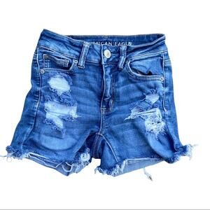 American Eagle Hi-Rise Shortie Distressed Stretch Blue Jean Shorts Size 0
