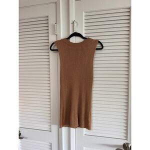 Perfect for holiday festivities. It's a metallic gold color with an open back. It reminds me of a shirt version of the Magaschoni Sweater Dress with sparkle.