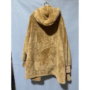 Cozy plush robe with hood. Soft and warm fabric. Perfect for lounging.