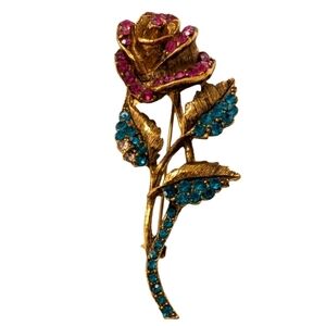 Bright Pink and Robins Egg Blue encrusted floral rose Brooch Pin