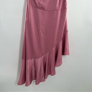 NWT Lulus Loving the Attention Mauve Satin Asymmetrical Ruffled Midi Dress