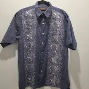 Stylish and comfortable, this blue patterned short sleeve shirt is perfect for any casual occasion. Its intricate design adds a touch of elegance to your wardrobe.