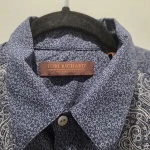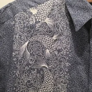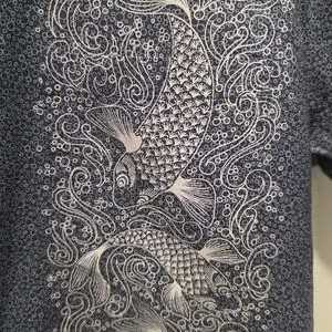 Tori Richard Shirt Medium Blue Koi Fish Tropical Hawaiian USA