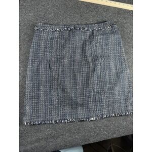 Banana Republic Skirt Womens Size 10 Blue Tweed Frayed Hem Pockets Modern Chic