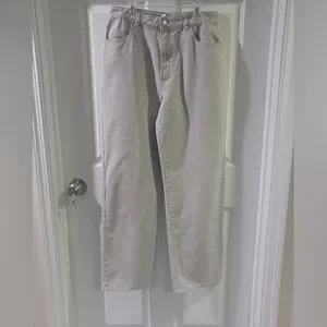 Trendy high raise, wide leg jeans, in great conditions, beige color, not grey. strong fabric, great quality, side and back pockets, no stretch. Osaka style.