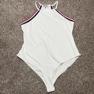 Charlotte Russe Women’s Large White Bodysuit with Red and Black Trim