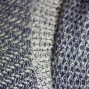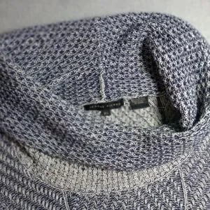 The bands of interwoven blue and white shift quietly from pattern to pattern. The cowl neck is classic and comfortable, with a surprise detail - the cowl comes to a point behind the neck. The cotton is cottony: warm but breathable, with a comfortably heavy hand and soft drape. It's trendy coastal comfort, and it's timeless understated quality.