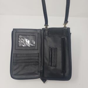 Black Faux Leather Crossbody Phone Wallet Purse Organizer Bag Womens