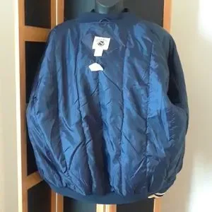 NWOT Steve & Barry’s Outfitters Michigan Jacket Navy Blue, Gold and White, size XXL, button snap closure, Approx: Armpit to armpit 29 1/2", Shoulder to hem 29 1/2", Sleeves 25", Shoulder to Shoulder 25, NO CALL OUTS