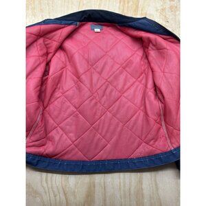 This vintage OshKosh B’Gosh denim Detroit style barn jacket in size XL features a cotton outer shell with a nylon lining, making it lightweight and breathable. The jacket has a zip and snap closure, with accents like buttons and the brand logo. With a bomber style and spread collar, it is ideal for casual, workwear, or outdoor occasions, perfect for the seasons of winter, fall, and spring. Made in the USA, this limited edition jacket also boasts pockets and is machine washable for easy care.