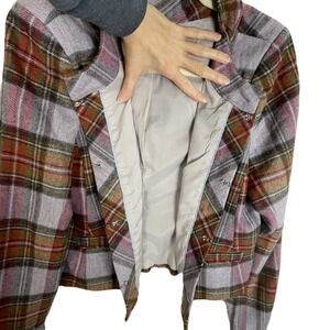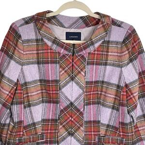 Lands' End 10 Wool Plaid Jacket Lilac Rust Olive Hook Front Lined Classic