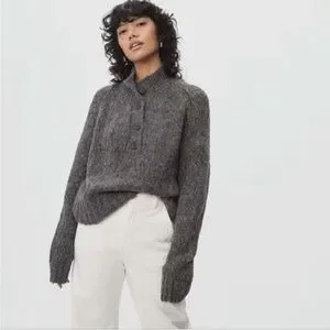 Everlane the lofty knit Henley button up alpaca wool Blend sweater