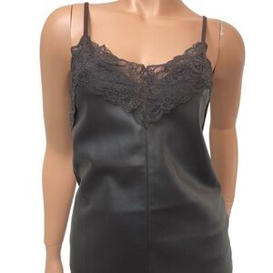 NWT Bishop+Young Babydoll Vegan Leather & Rayon Lace Trim Cami Tank. Chocolate Brown Sz. XS~Biker Luxe Y2K