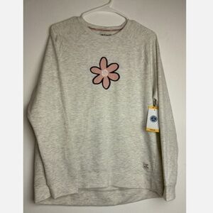 NWT Life is Good Womens Medium Long Sleeve Sleepshirt Top Fleece Flower Gray