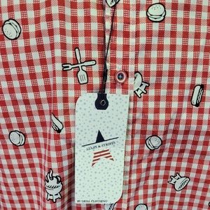 Stars and Stripes Short Sleeve Cookout Button Down Shirt sz L NWT