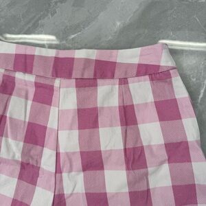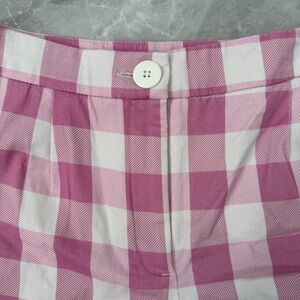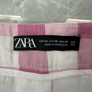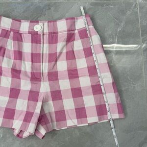 Good condition - Women’s Zara Gingham Checkered Cotton Blend High Waisted Shorts Pockets. Has two side pockets and zipper with button closure. Colors: pink and white. Size: XS.
