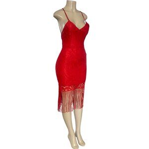 Stunning Fringe Hem Lace Spaghetti Cross Strap Lace Up Backless Bodycon Dress S