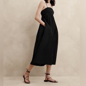 Banana Republic Ariella Taffeta Black Midi Dress Size 6