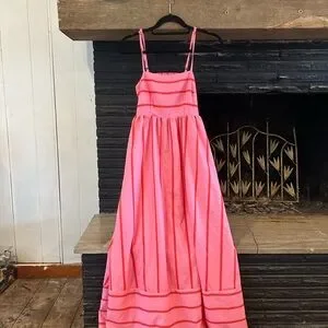 Charming pink striped dress perfect for any occasion. Comfortable and stylish, great for maternity as well!