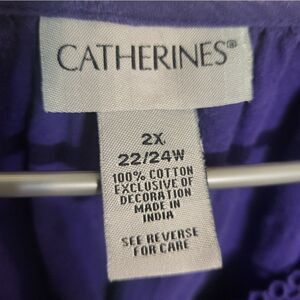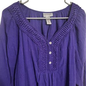 #70 Catherines Purple Crochet Lined Neckline Womens Blouse, Plus Size 2X 22/24