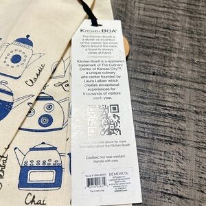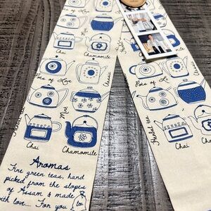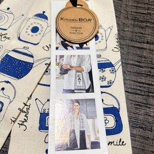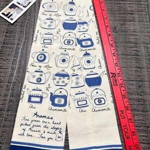 Stylish cream kitchen boa towel with blue camera print. Perfect for adding a unique touch to any outfit when washing dishes to washing your car. Perfect for anyone. New with tags.