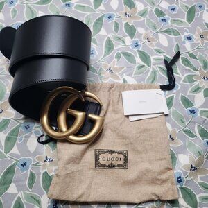 Authentic Gucci GG Marmont Extra Wide Leather Black Belt Size 100