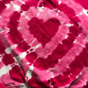 New Hanes ultimate cotton 90/10 cotton blend sweatshirt. Tie dyed In fuchsia and pink with a heart.