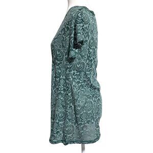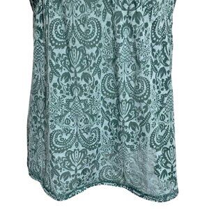 Y2K Burnout Maurices Green Paisley Print V-Neck Short Sleeve Top Womens L