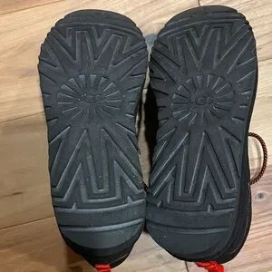 Stylish UGG sneakers with a black and tan color scheme. Comfortable and versatile for everyday wear. Gently worn (twice). Excellent condition.