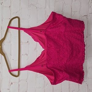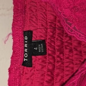 Torrid Lace Print Smocked Crop Top Pink Peacock Womens Size 4x NWT