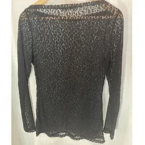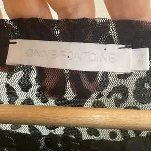 Anne Fontaine Designer Black Sheer Lace Leopard Print Top Euro Size 38 US Size 6