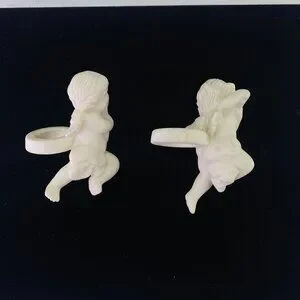Bisque porcelain angels designed to hug candles, enhancing elegant displays.