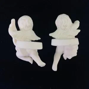 Vintage Pair Of White Bisque Porcelain Angel Candle Huggers Figurines