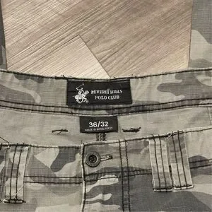 Keywords: Beverly Hills Polo Club, cargo pants, camouflage, men's pants, size 36, durable fabric, multiple pockets, casual wear, outdoor activities, pre-owned.