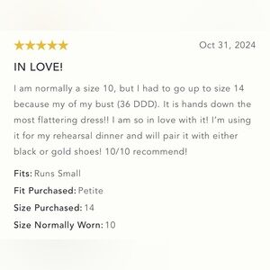 This dress is by far the nicest most upscale party dress I have ever purchased and worn! The fabric is so soft and when the light hits it the gold sparkles really come alive! I wore it for Nee Years 2025 and received endless compliments! Add it to your cart!
