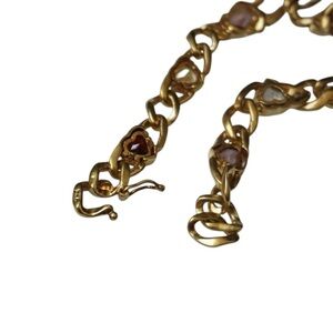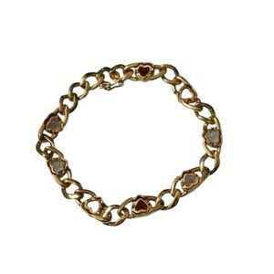 Cuban Link Heart Bracelet / Vintage Estate Gold Vermeil Sterling Silver 5.50TCW Multi-Gemstone Bezel set Heart Link Bracelet