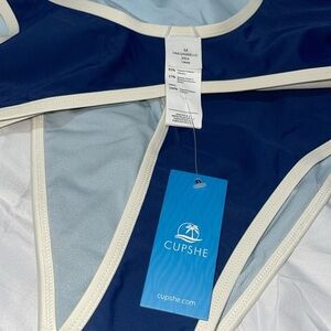 Cupshe Navy Blue Bikini Set High Waisted Two Piece Swimsuit Bathing Suit size M