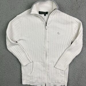 Lauren Ralph Lauren Ivory Cable-Knit Full-Zip Sweater Women's Size Petite/P