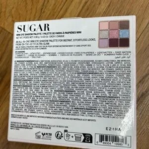 Explore the Sugar Eyeshadow Palette. Features pink, brown, silver, blue, and purple shades. Perfect for bold and subtle looks.