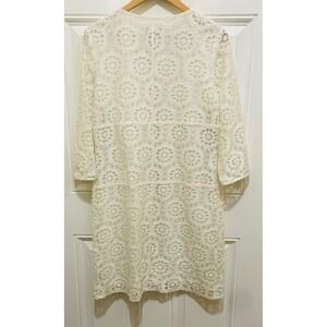 Keywords: Laundry by Shelli Segal, lace dress, ivory dress, floral dress, zip front dress, knee length dress, cocktail dress, career dress, size 12, womens dress, three quarter sleeve, lined dress, V-neck dress
