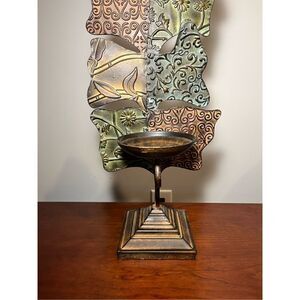 Gorgeous and elegant candle holder made of metal. Large size high 26". Candle not included but let me know if you are interested. In excellent condition like new.
