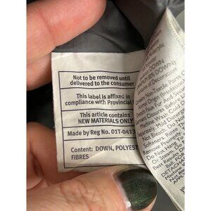 Details: missing fur liner of hood, one of the tightener strings is broke but still functional, purple stain on inside of jacket from a pen that broke, bottom of the zipper was broken off but doesn't affect use. see pictures for measurements and condition